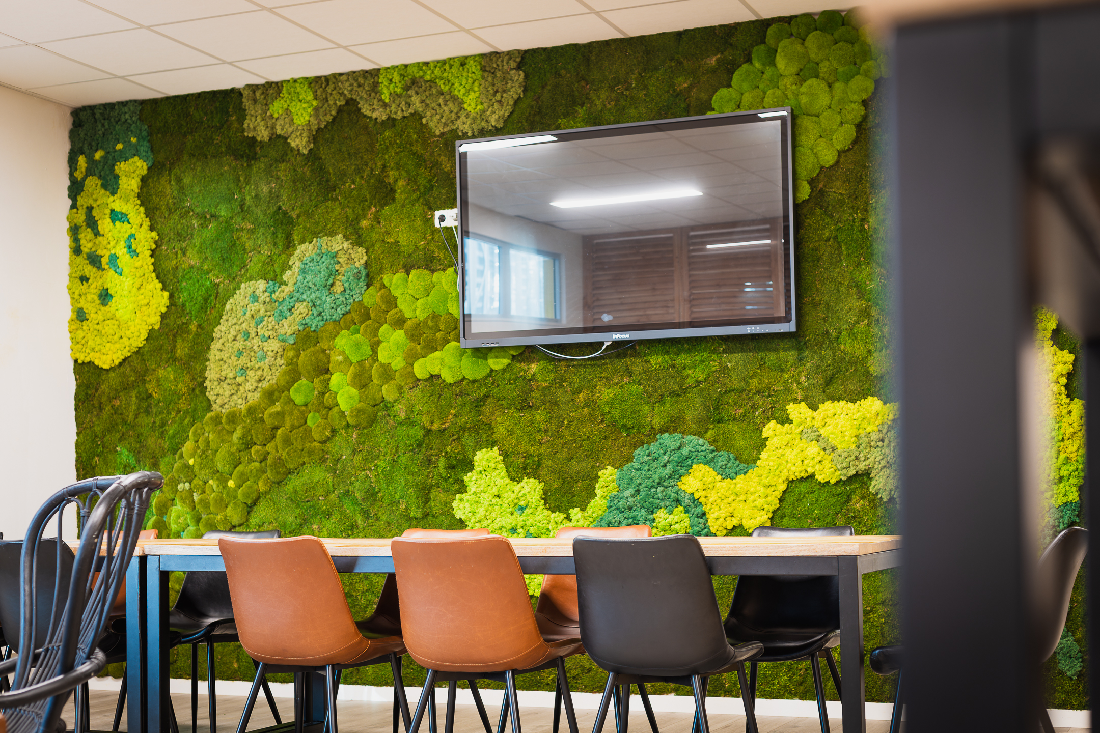 Een huisartspraktijk die we mochten vergroenen, gaf aan dat patiënten rustiger leken in de wachtkamer. Ook de assistenten meldden een prettigere werksfeer. Een simpele combinatie van mos kunst en hangplanten aan de muur had al direct effect.