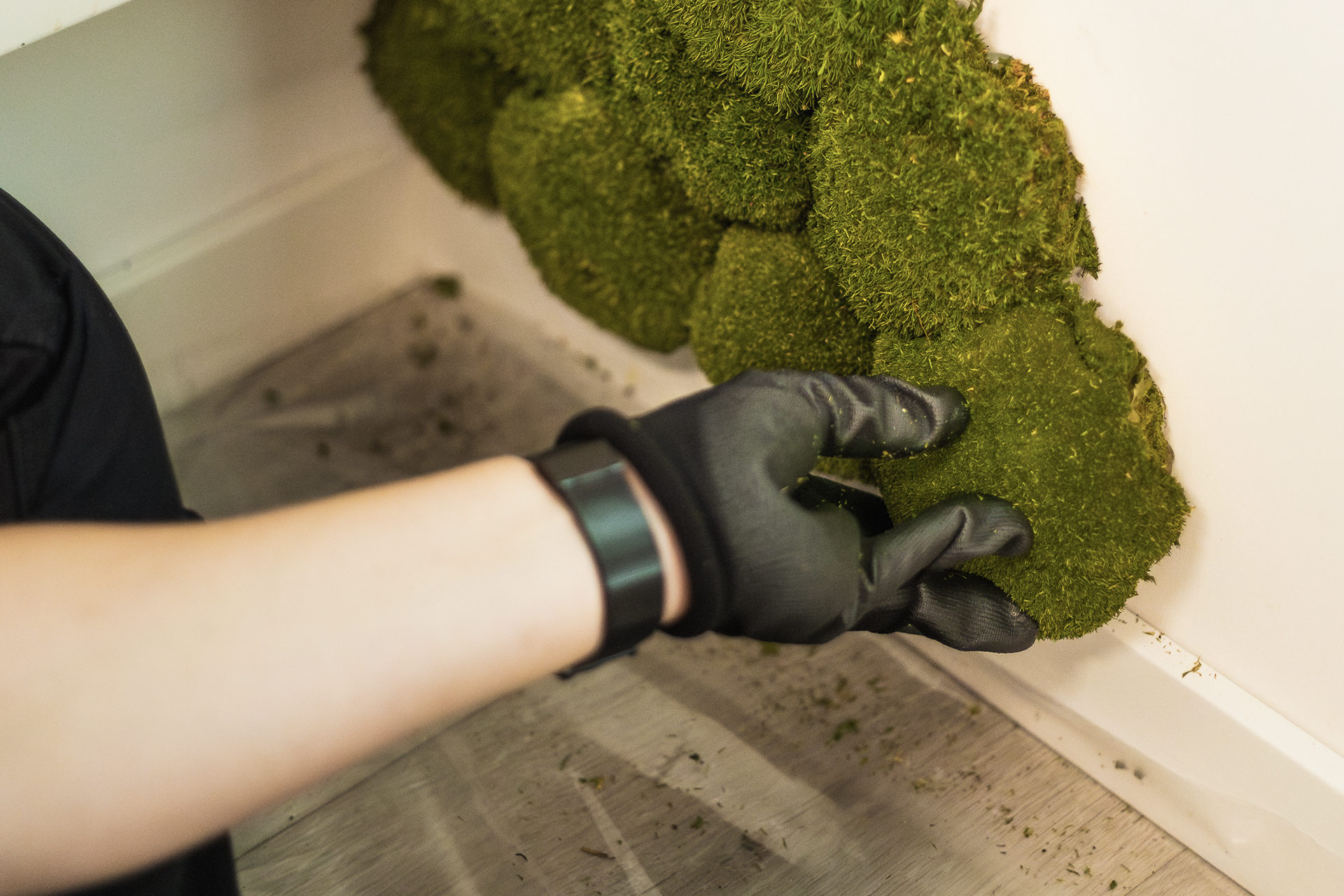 Ik zorg voor de inkoop van planten, potten en materialen, en maak eventueel moskunst of bloemstukken in het atelier. Vervolgens kom ik alles plaatsen en monteren netjes,